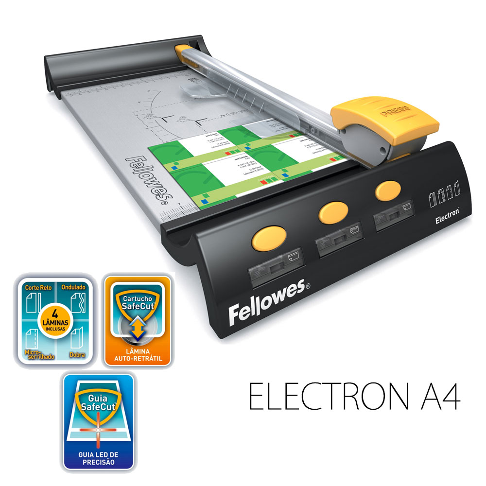• Guias de corte para formatos de papel, fotos e para cortes em ângulo;