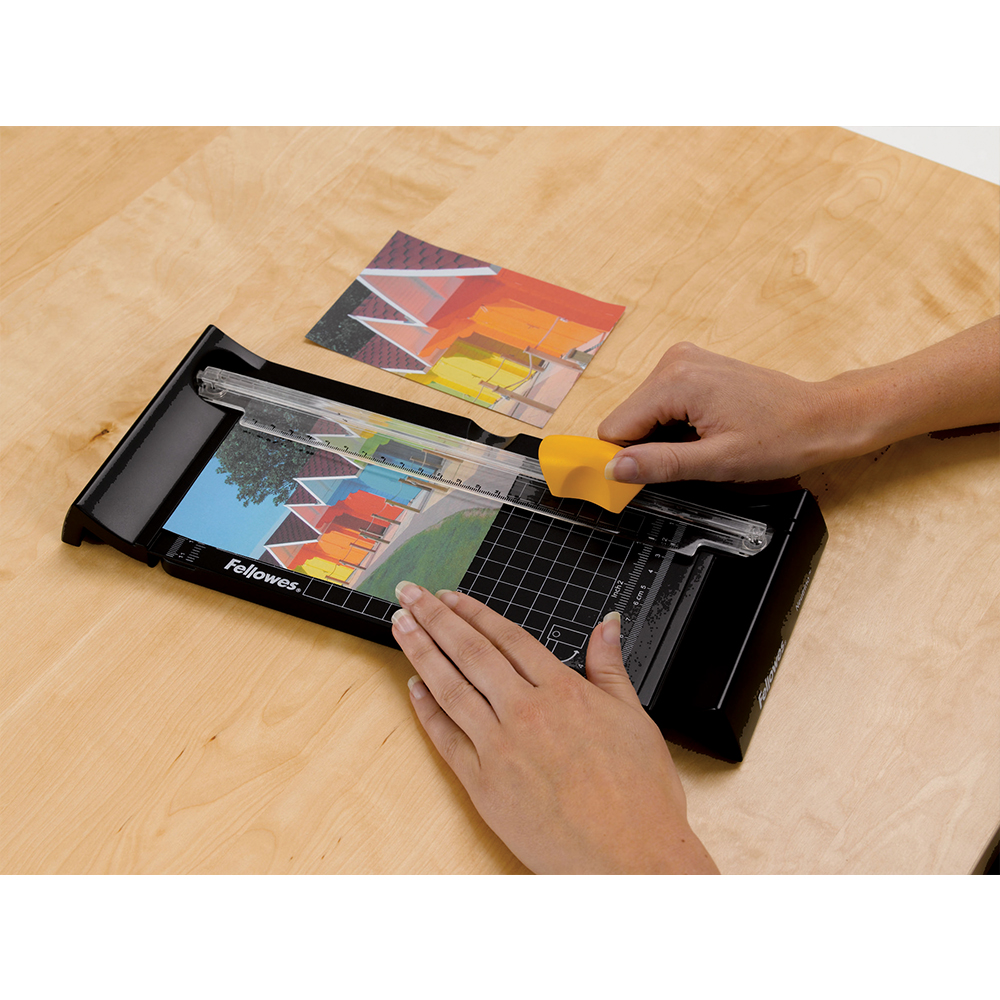 • Guias de corte para formatos de papel, fotos e para cortes em ângulo;