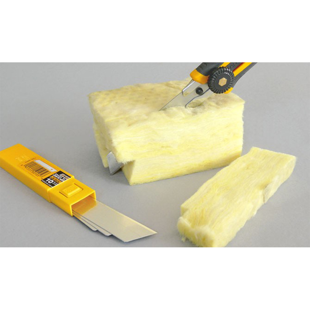 A OLFA possui uma grande variedade de lâminas que duram até 10x vezes mais. As lâminas OLFA são feitas de uma liga de aço especial para ferramentas. São muito afiadas e de grande vida útil. A qualidade superior das lâminas OLFA é resultado de um processo de produção exigente. Experiências e testes têm mostrado que o ângulo de 59 graus é o ângulo perfeito para uma lâmina destacável. Somente o aço da mais alta qualidade é selecionado para uso. Para todas as lâminas OLFA a resistência do aço é testada, os ângulos são afiados e as dimensões precisamente calculadas, entre outras condições. Tudo com a finalidade de alcançar o melhor balanço entre o afiamento de fábrica e a longevidade da lâmina. O ângulo, comprimento e largura das lâminas OLFA se tornaram padrão internacional para lâminas destacáveis.