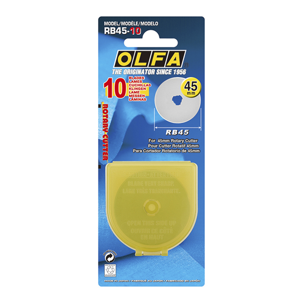 Compatível com os modelos RTY-2/G, 45C, RTY-2/DX e RTY-2/NS, a lâmina circular RB45 possui 45 mm de diâmetro e espessura de 0,3 mm. A OLFA possui uma grande variedade de lâminas que duram até 10x vezes mais. As lâminas OLFA são feitas de uma liga de aço especial para ferramentas. São muito afiadas e de grande vida útil. A qualidade superior das lâminas OLFA é resultado de um processo de produção exigente. Somente o aço da mais alta qualidade é selecionado para uso. Para todas as lâminas OLFA a resistência do aço é testada, os ângulos são afiados e as dimensões precisamente calculadas, entre outras condições. Tudo com a finalidade de alcançar o melhor balanço entre o afiamento de fábrica e a longevidade da lâmina.
